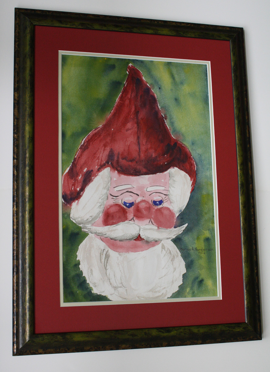 When I show prints of Mother’s (Marion Gunderson) Santa, right off the bat I explain that Santa isn’t one of Mother’s best works. As a matter of fact, the original had been passed by and left in a portfolio in a closet at Gunderland until Christmas Day of 2003. Santa needed a makeover.