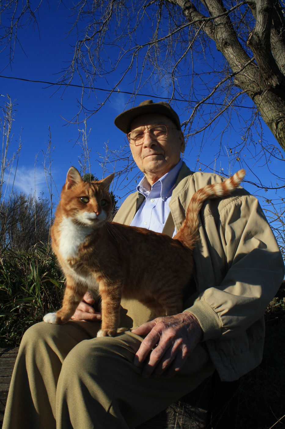 On the day I took this photo of Daddy/Grandpa Deane, he and I had walked down toward his shop. Along our way, Mouser was sunning himself on what Grandpa Deane called the loading dock (or something like that). Mouser had been sitting next to right where Grandpa Deane is sitting in this photo. I just couldn’t resist shooting a bunch of pictures. They both were so cooperative.