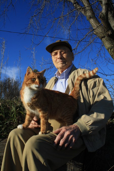 This photo is an example of where I’m thinking using a reflector (mentioned in the previous post and also two posts ago) could have been helpful. Since I haven’t yet used the 5-in-1 reflector that my next-older-sister Peggy gave to me for Christmas, it could be that I’m way off base here. But, I’m thinking that if the reflector would have been at my dad’s (Deane Gunderson) left side in this photo there wouldn’t be so much of his good friend, Mouser, shadowed.