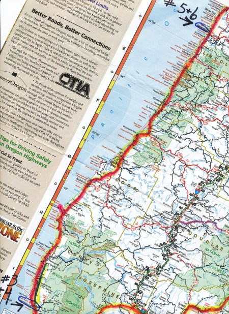 On day #5 of Bill's and my 2009 Oregon trip, we left Brookings (circled at the lower left) and headed for Newport (circled at the upper right) with a stop at Cape Blanco. Click once (twice is even better) on this and any of the other images to magnify them.