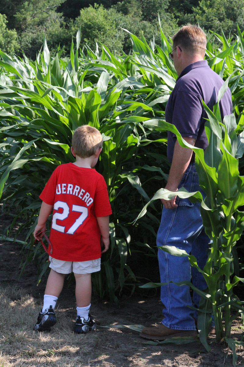 Today Jackson and Bill inspected the neighbor’s cornfield that I posted about in May. After they were in the cornfield today, Jackson designed the image below (choosing the colors, using the paintbrush, placing the photos) and determined most of the text to be included. Leave it to a five-year-old to notice that I forgot to include the “th” after the “29”! Maybe he can become my proofreader!