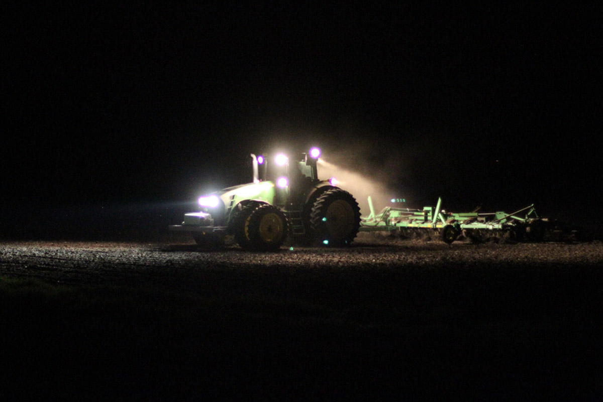 - Late at night (and into early morning) the field cultivator tilled this Section 13 ground in preparation for corn planting the following day. The camera is looking west from the lawn at Gunderland.