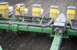 - The day after the ground was tilled, corn was planted in the same field. The planter is shown here in raised position. The wheels that are teeth-like are called row cleaners*. They move some residue (e.g., stubble from the previous year) and clods (that the field cultivator didn’t already reduce in size) out of the way. The row units (each including a seed tube) are immediately behind the row cleaners.