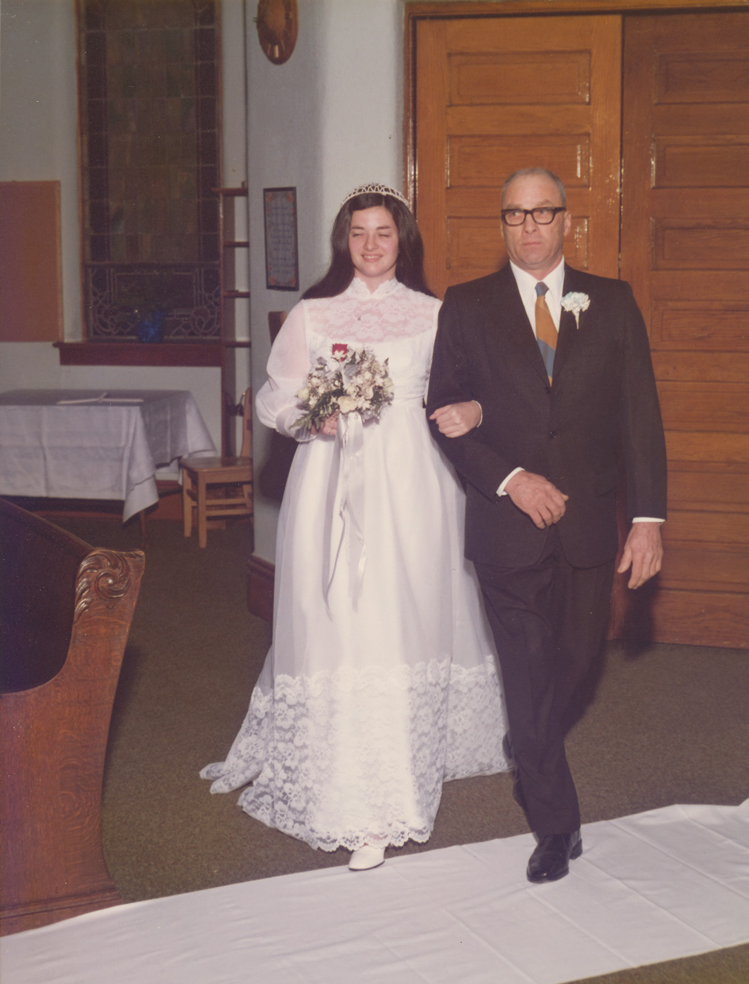 My father and me (Louise) on November 15, 1975, the same year Daddy began his "Bubbles In The Wine" column. The last service held here in Rolfe's (Iowa) Presbyterian Church was its Commemorative Sunday service, April 30, 1995. Soon thereafter this church was razed, I believe in 1996. (Click photo to enlarge.)