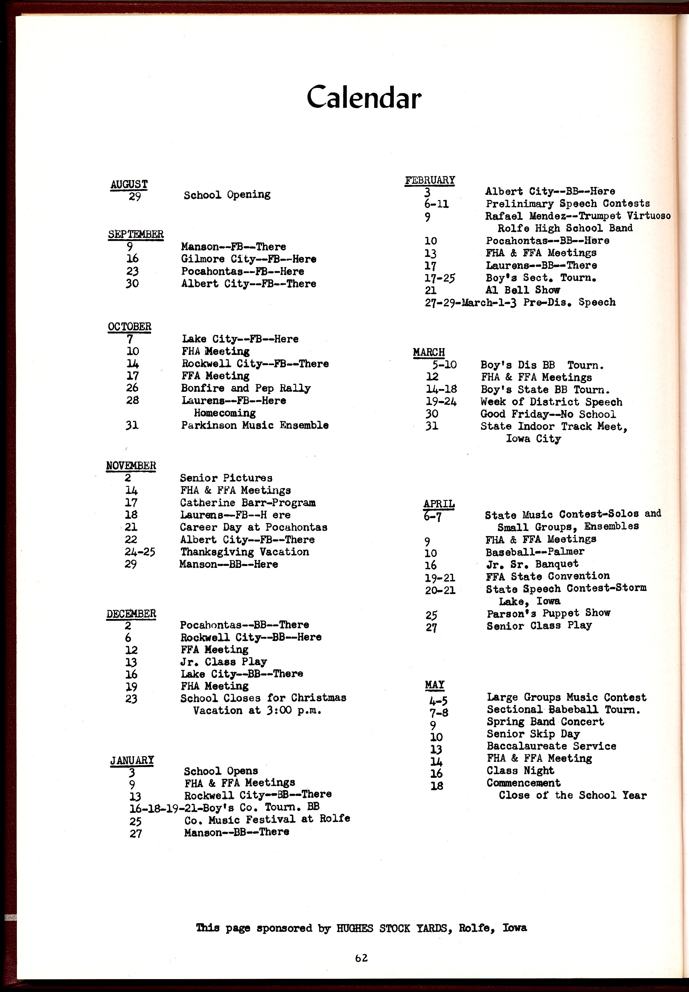 Also in the gallery below are images of the 1956 yearbook of the Rolfe, Iowa, school district. Links to other Rolfe yearbooks are in the “Categories” column at this blog’s homepage. More yearbooks will be added periodically.