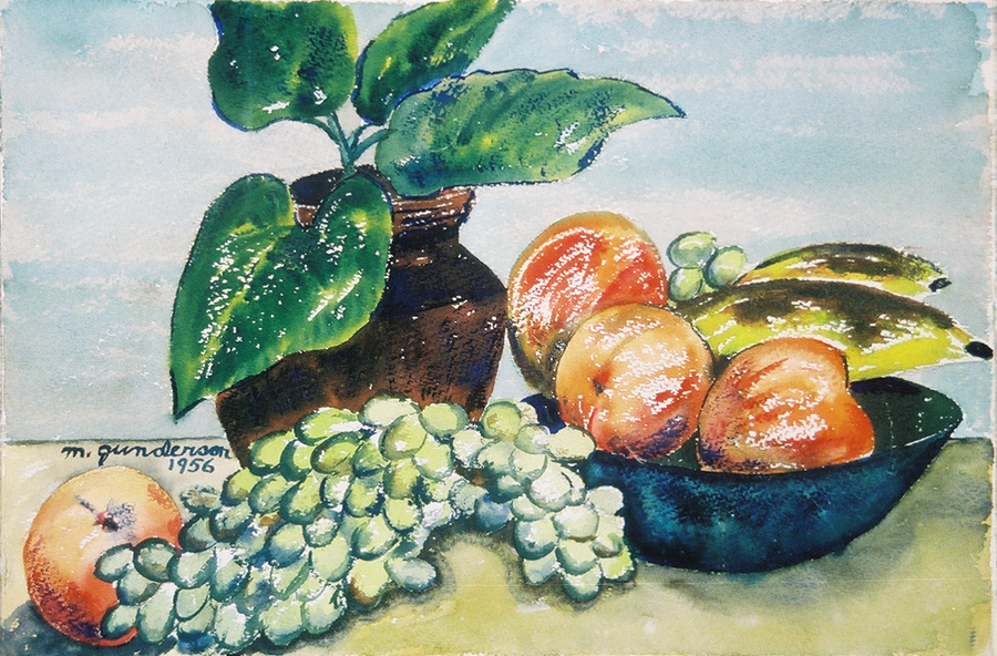 In the gallery of thumbnail images in this post are images of nine watercolors by Mother (Marion Gunderson). Eight were definitely painted in 1956; I believe the ninth (Holy Family**) was, as well. In Mother’s 1956 journal***, there are twelve or thirteen dates for which she has entries indicating she painted on those dates.