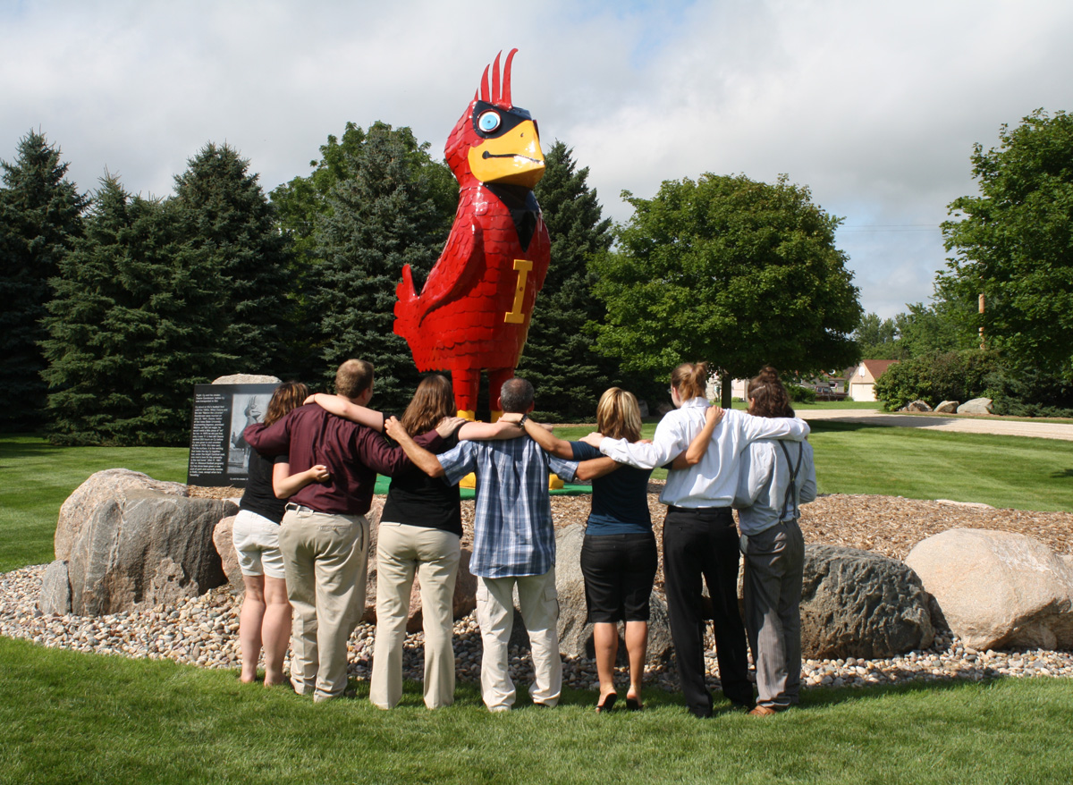 Here is my dad's 11 1/2-foot-tall statue of Cy located in Rolfe, Iowa. In the foreground are my dad's seven grandchildren. To the left is the 3' x 3' granite plaque that was unveiled this past Friday. (Click on photo to enlarge.)